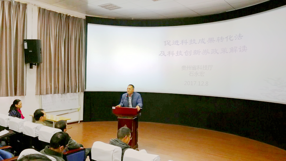 为进一步把握好、利用好国家和省政府的科技转化的政策,激发科研人员的内生动力,12月8日下午,贵州省科学技术厅科技成果与技术市场处石永宏副处长到安顺学院作题为《促进科技成果转化法及科技创新券政策解读》的专题讲座。安顺市科学技术情报研究所吴颀副所长及工作人员,安顺学院各二级学院分管科研副院长和专业教师聆听报告。报告会由熊国敏副院长主持。