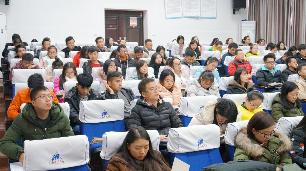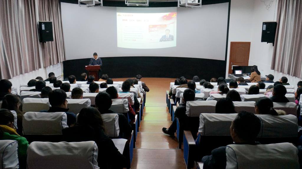 11月22日下午,安顺学院党委副书记陶文彩在旅游学院实训室为党政办公室、组织部、宣传部、机关党总支、统战部、外国语学院(大学公共外语教学部)、化学化工学院和部分学生宣讲党的十九大精神。