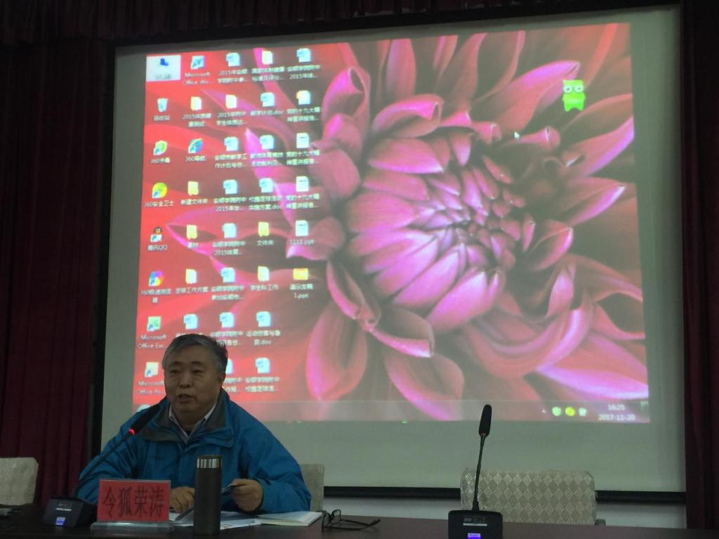 2017年11月20日下午,安顺学院党委委员、副院长令狐荣涛到附中宣讲党的十九大精神和习近平总书记在贵州省代表团重要讲话精神。会议由附中校长齐娟主持,附中全体教职工参加了报告会。