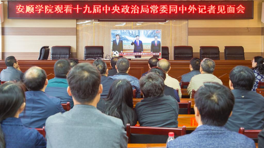 安顺学院集中收看十九届中共中央政治局常委同中外记者见面会现场直播