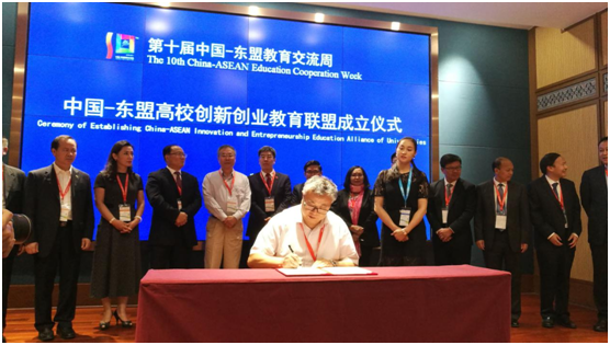 安顺学院副院长令狐荣涛代表安顺学院同“中国——东盟高校创新创业教育联盟”21所国内外高校签署合作备忘录