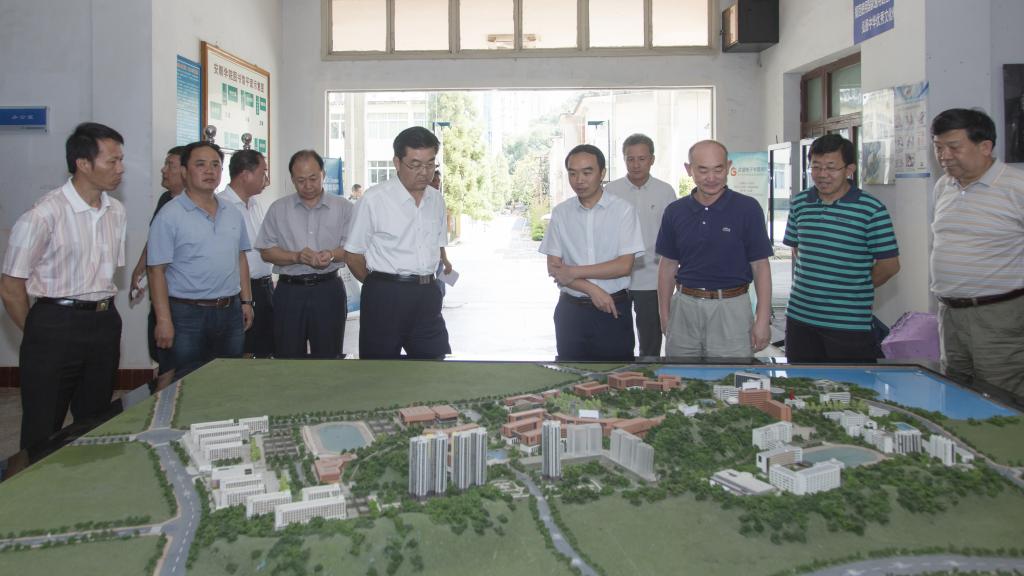 山东省政协副主席、党组成员许立全(左四)一行在安顺学院院长刘雷(右三)、安顺市政协副主席贺未泓(左二)等陪同下察看安顺学院校园规划。