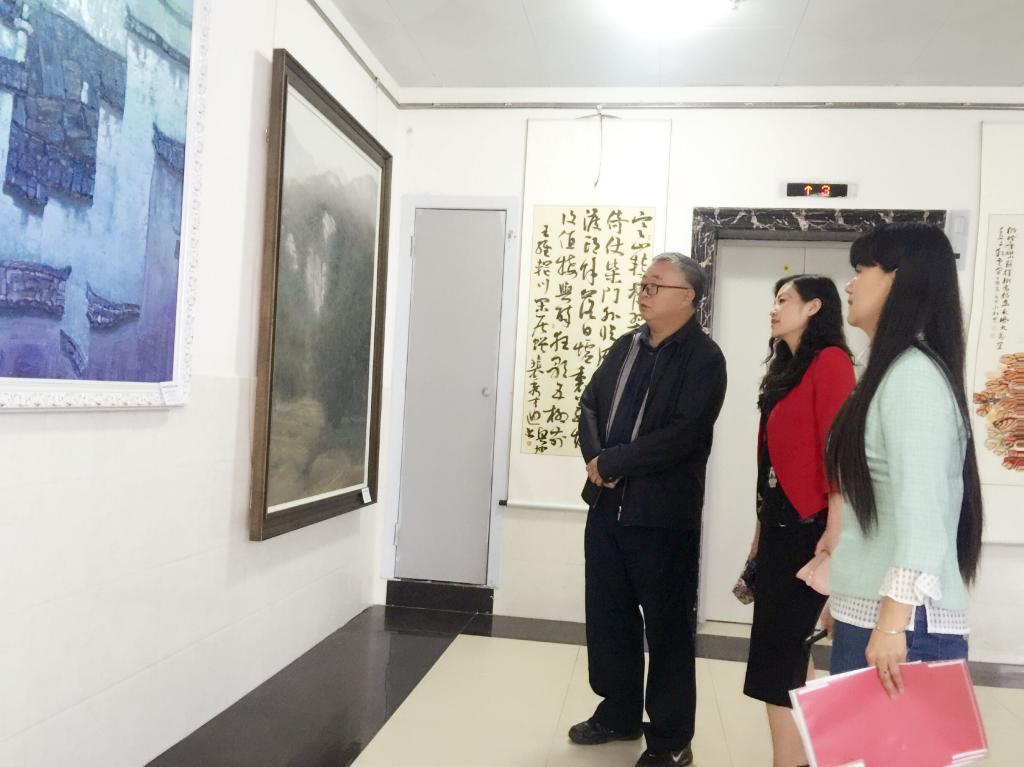 安顺学院副院长令狐荣涛教授(左)欣赏书画作品