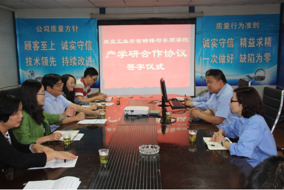 6月6日上午,安顺学院副院长王芳恒、教务处处长支敏、实验管理中心主任杨筱珊、电子与信息工程学院院长周士芸等一行与贵州安吉航空精密铸造有限责任公司签订了校企合作协议。