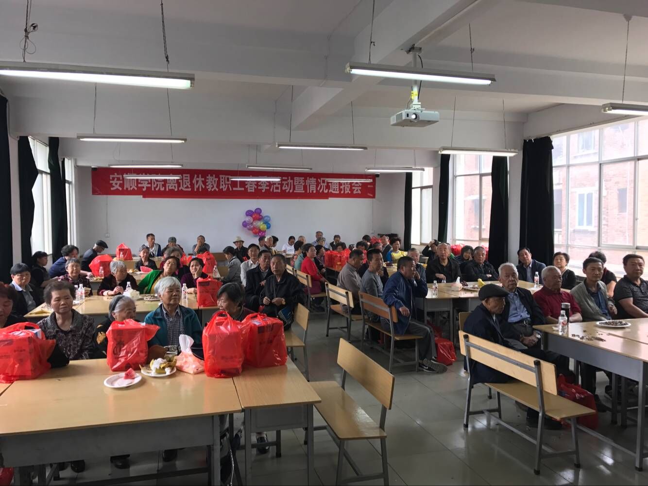 5月16日下午,安顺学院离退休干部工作处组织离退休教职工开展春季座谈会、猜谜、定点投篮、套圈等活动。学校党委书记罗荣彬、院长刘雷、纪委书记马力以及100多位退休教师参加座谈会。会议由纪委马力书记主持。