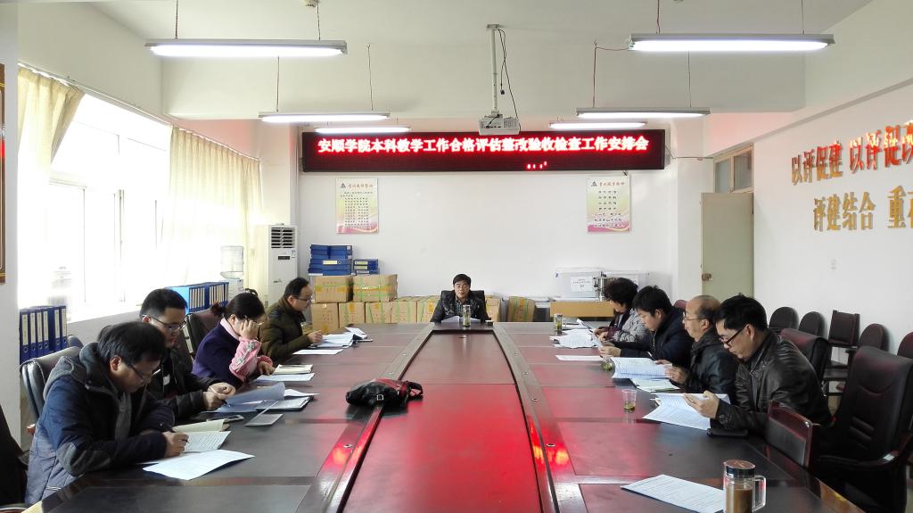 根据《安顺学院本科教学工作合格评估整改方案》的安排,为期一年的评估整改阶段已经结束,学校决定对评估整改工作进行验收检查。 2016年12月1日至12月22日,学校评建办(教务处)组织开展了安顺学院本科教学工作合格评估整改验收检查工作暨2016年教学专项检查工作。