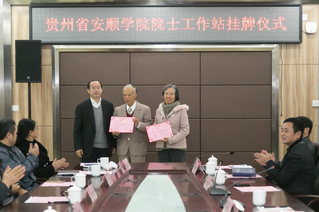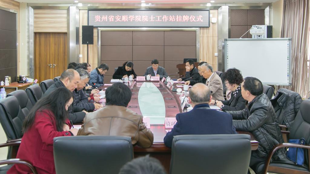 2016年11月28日,安顺学院院士工作站启动、揭牌仪式在我校图书馆隆重举行。中国地质科学院林景星、宁秋侠研究员,安顺市委常委、安顺市人民政府胡金武副市长,安顺学院党委书记罗荣彬,党委副书记陶文彩,副院长熊国敏、王芳恒、令狐荣涛,纪委书记马力,副院长郭本华,党委委员、教务处处长支敏,安顺市科协主席李素英,安顺市科技局副局长涂江顺,安顺市申遗办常务副主任韦仕鸪,关岭地质公园管理处副处长陈正江,安顺学院党政办、宣传部、科研处、资环学院等部门负责人及部分老师参加揭牌仪式。会议由熊国敏副院长主持。