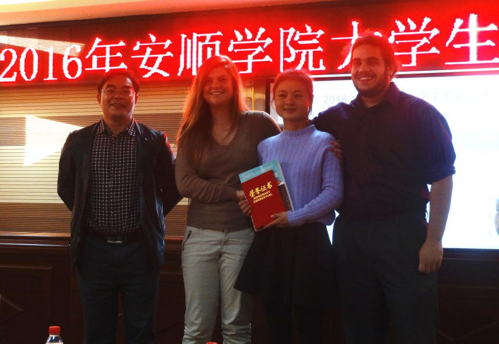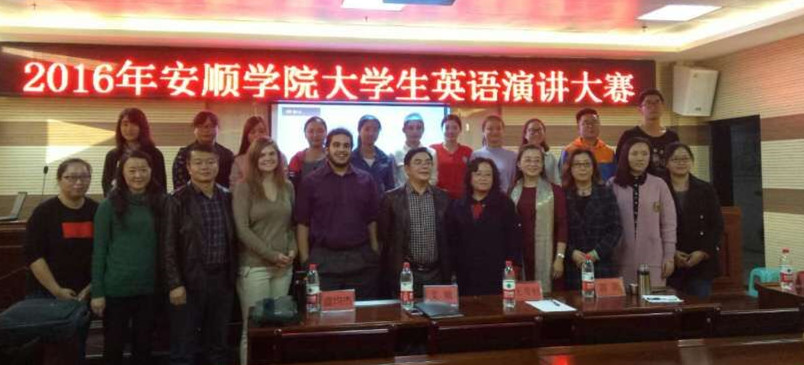 安顺学院副院长王芳恒教授,教务处处长支敏教授,外国语学院院长、大学公共外语教学部主任蒋燕教授,外国语学院党总支书记虞均杰副教授,大学公共外语教学部副主任王慧颖副教授,外国语学院副院长曾沉副教授,外教Marlo和Shayna受邀担任了此次演讲比赛的评委。