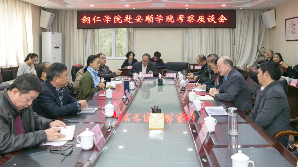 11月4日,铜仁学院党委副书记、院长侯长林,发规处处长罗静,人事处处长杨成光,科研处处长张学飞,教务处处长舒华,党政办副主任张江琳一行到安顺学院考察交流。