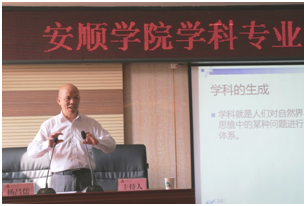 10月27日下午,贵州民族大学副校长杨昌儒教授在安顺学院特教大楼第三会议室作题为《一流学科建设》的专题报告,安顺学院副院长王芳恒、令狐荣涛等近百名教职工听讲。报告会由熊国敏副院长主持。