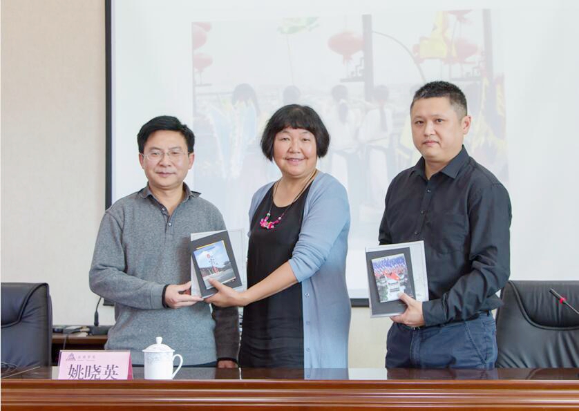 在专题报告会开始前,姚晓英主席向安顺学院纪委书记马力、宣传部部长蔡少平和听讲的同学们分别赠送了自己主编的《金陵金府入黔记》、《知食安顺》、《安顺好家风》等书籍。