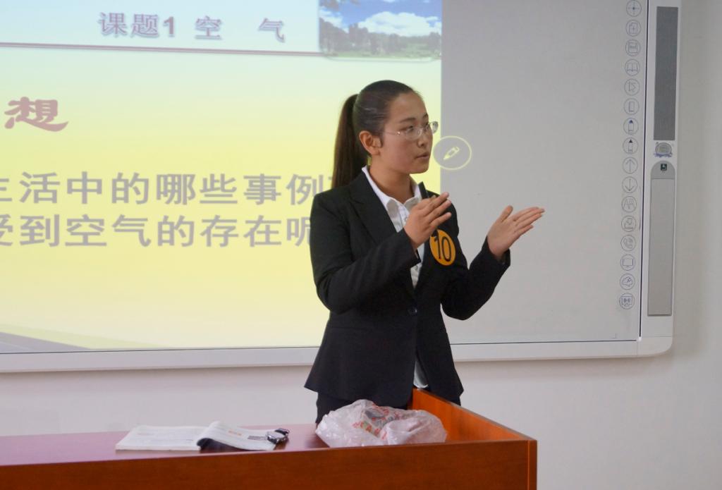 本次竞赛旨在深化教师教育改革,强化实践教学环节,促进学生教学技能的提升,提高学生的就业竞争力和适应基础课程改革的能力。按照《关于举办2016年安顺学院学生教学技能竞赛的通知》要求,竞赛主要针对2013级和2014级在校本科生,竞赛内容限定为初、高中年级的必修教学内容。其中教学设计和课件制作均为参赛选手赛前做好,模拟教学采用PPT与板书相结合进行,时间为10分钟。比赛从下午2点到6点结束。参赛选手们积极、踊跃、紧张、有序、精彩的表现给评委及观摩的学生留下了深刻印象。