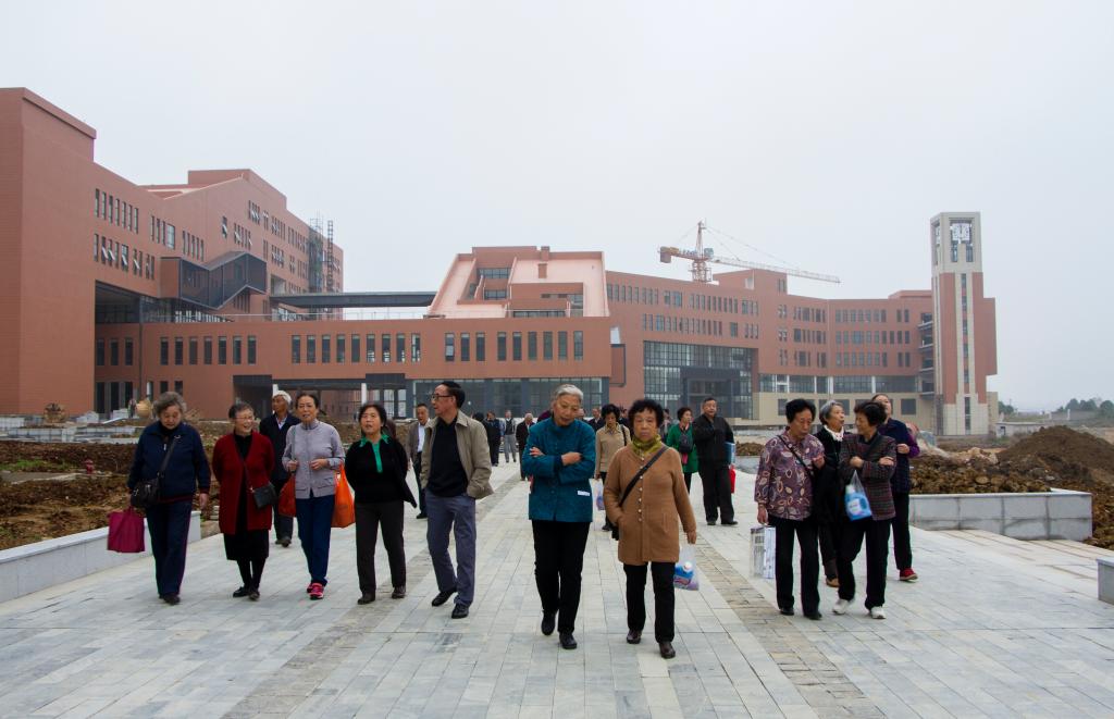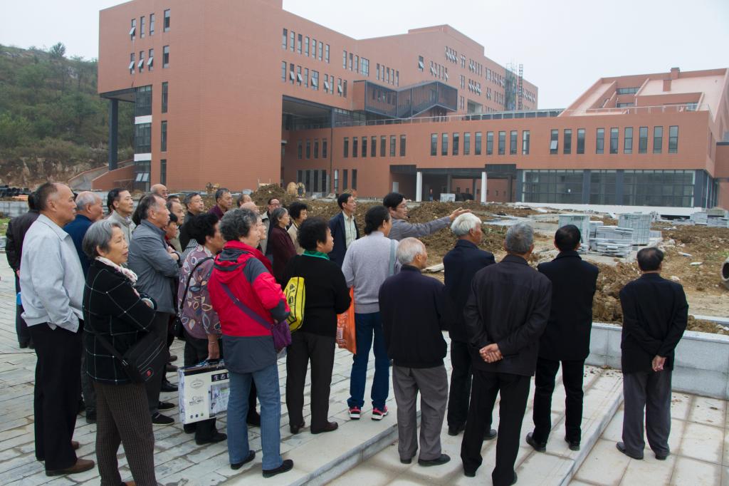 随后,学校领导和老同志在学校礼堂前合影留念并一同参观了学校改扩建工程。老同志们纷纷对学校的发展表示赞叹,并对学校今后的发展充满信心。