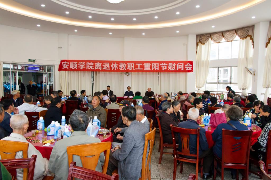 10月9日下午,安顺学院举行离退休教职工重阳节慰问会,大家欢聚一堂,共度重阳佳节。安顺学院党委书记罗荣彬、院长刘雷、纪委书记马力出席慰问会,党政办公室主任韦英、组织部副部长罗廷勇、离退休干部工作处处长刘颖等相关部门负责人及100余名离退休教职工参加了慰问会。慰问会由纪委马力书记主持。
