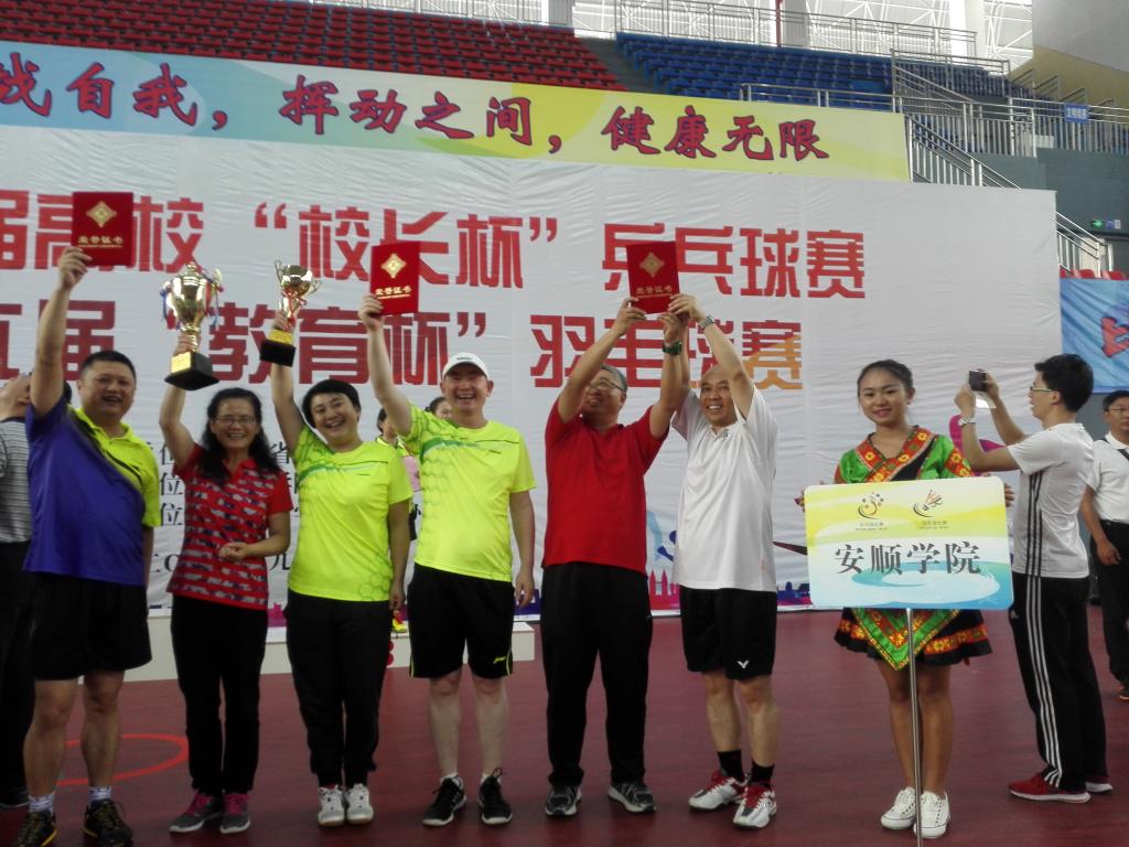 2016年9月23日-25日,贵州省第十届“校长杯”乒乓球赛和贵州省第六届“教育杯”羽毛球赛在凯里学院体育馆举行。安顺学院代表队由党委书记罗荣彬、院长刘雷、副院长熊国敏、副院长令狐荣涛、纪委书记马力、副院长郭本华、特教学院党总支书记邬贤芳组成。安顺学院代表队阵容豪华、实力强劲,特别是罗荣彬书记、刘雷院长素有“全球通”的美誉。在本次比赛中,安顺学院代表队取得了突破性的成绩。