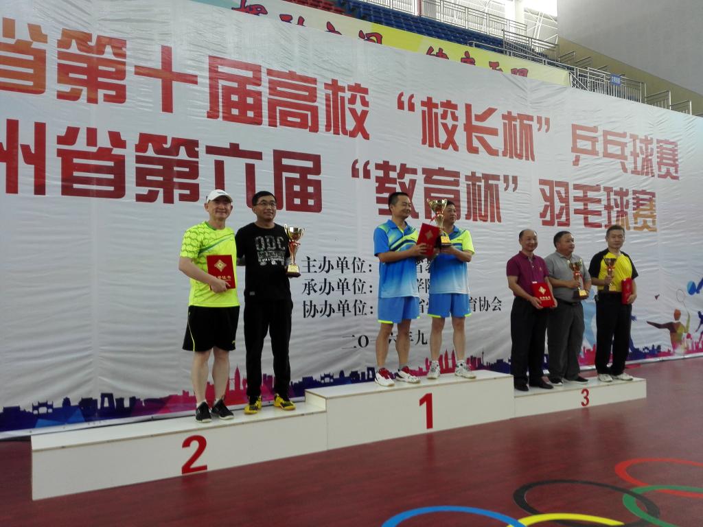 省教育厅副厅长黄建(左二)、安顺学院院长刘雷(左一)获厅级干部组男子双打第二名