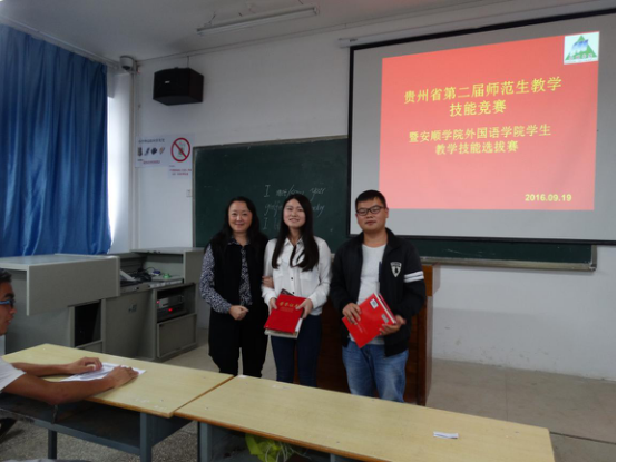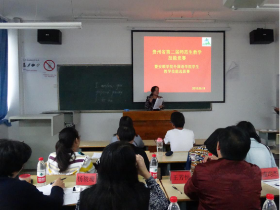 为促进学生教学能力提升,激励学生不断创新与进步,评选出学生参加“贵州省第二届师范生教学技能竞赛”,2016年9月19日下午,外国语学院、大学公共外语教学部举办了安顺学院外国语学院学生教学技能选拔赛。