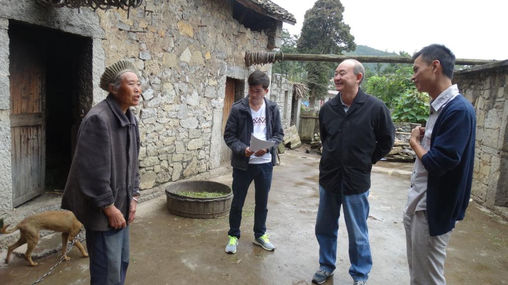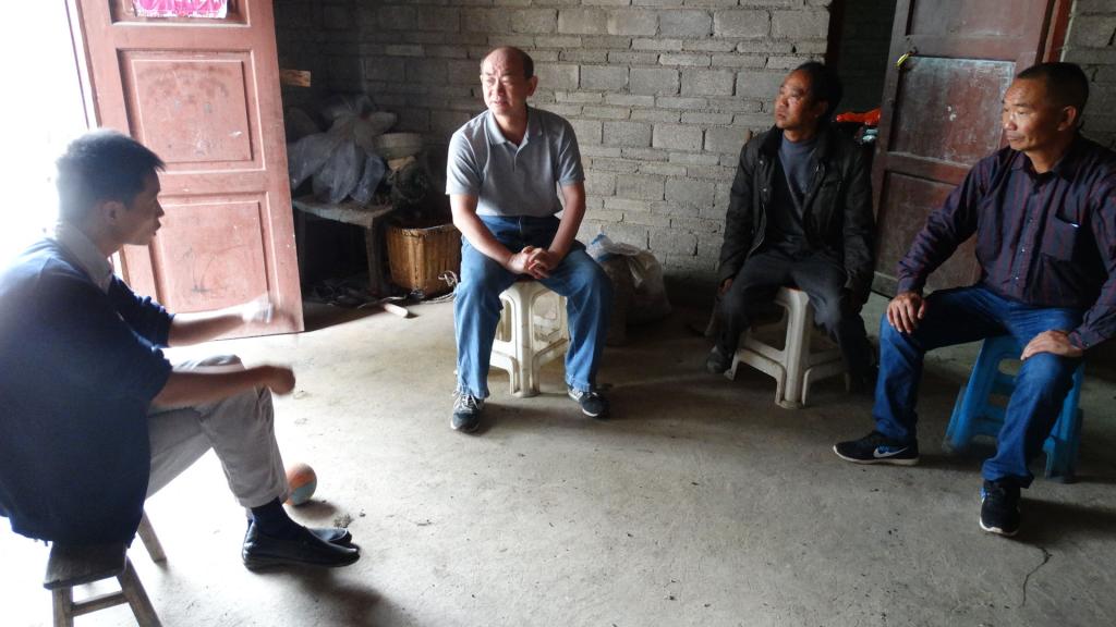 安顺学院院长刘雷(左二)在云峰村开展回访工作