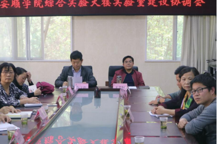 2016年4月19日下午,安顺学院综合实验大楼实验室建设协调会议在行政办公楼二楼会议室召开。安顺学院党委副书记陶文彩、副院长王芳恒、党委委员支敏出席会议,改扩建工程领导小组成员参加会议。会议由安顺学院党委副书记陶文彩主持。