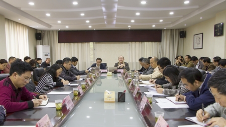 4月19日上午,安顺学院党委中心组扩大会议,传达学习贵州省本科高校转型发展工作座谈会等会议精神。校领导、各职能部门主要负责人、各学院党总支书记和院长参加学习。安顺学院党委书记罗荣彬主持学习并提出要求。