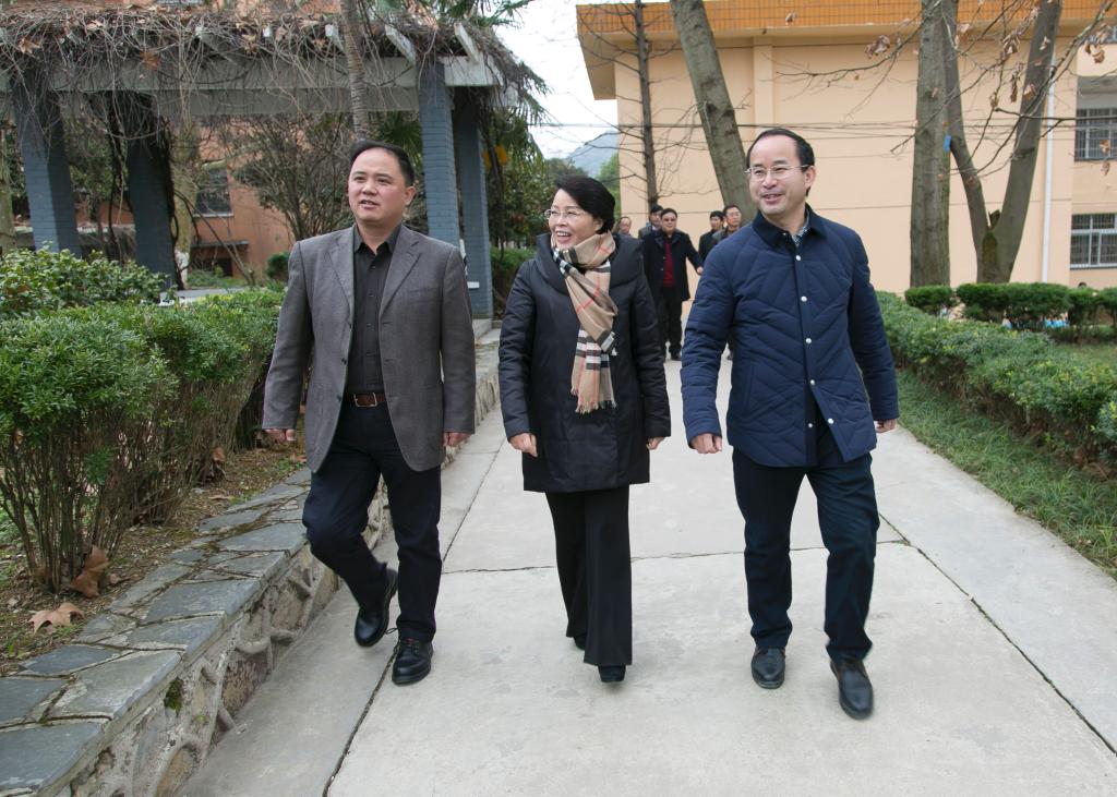 市委常委、市委宣传部部长杨晓曼(中),市政协副主席贺未泓(左),安顺学院党委书记罗荣彬(右)等实地考察安顺学院的大学生思想政治教育和校园文化建设工作