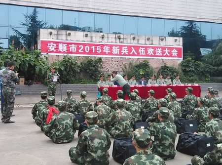 9月15日中午,安顺市征兵办公室在安顺火车站举行新兵欢送仪式。我校杨炯同学代表新兵发言。他说,部队是一个锤炼青年的大熔炉,军营是锤炼意志、重塑自我、实现理想的热土,一定要给学校和安顺人民交上一份满意的答卷。