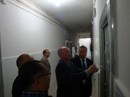 刘雷院长等领导查看新安装的学生公寓楼防盗门情况