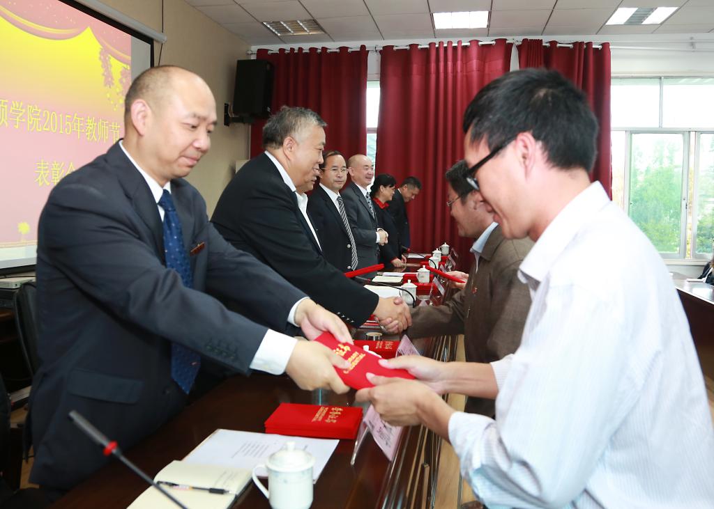 学校领导为优秀教师、优秀教育工作者、师德标兵代表颁发荣誉证书