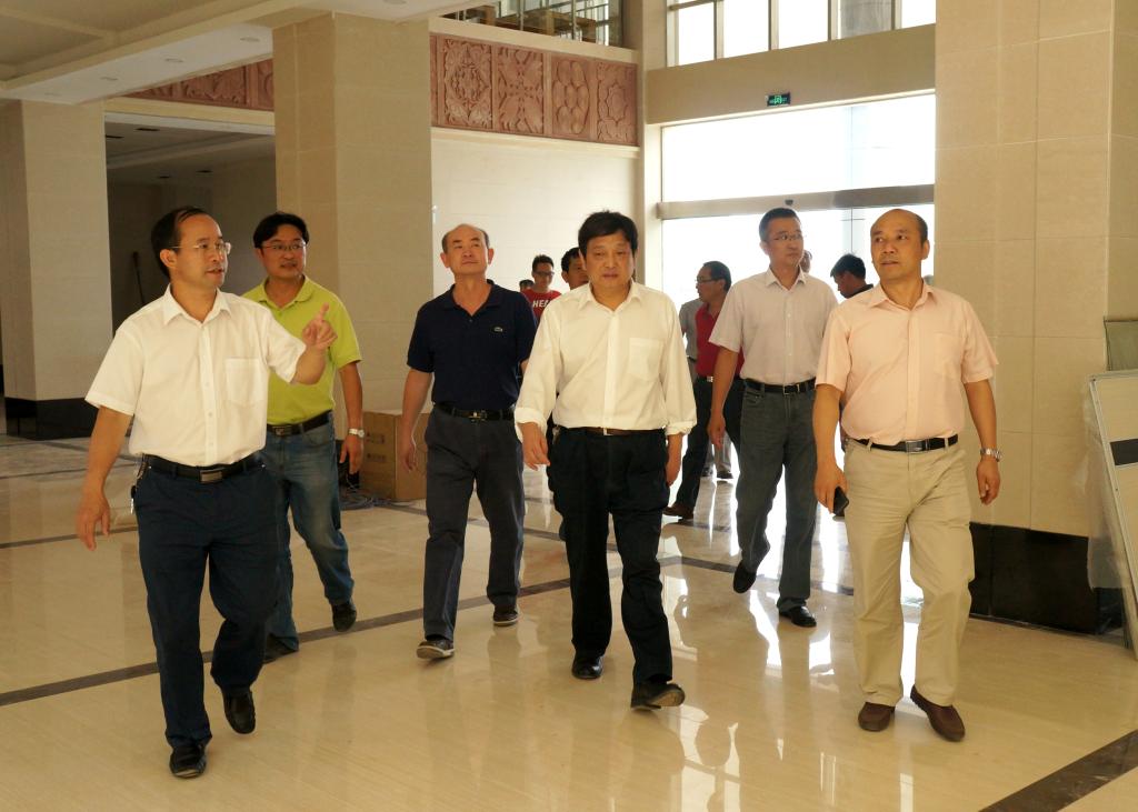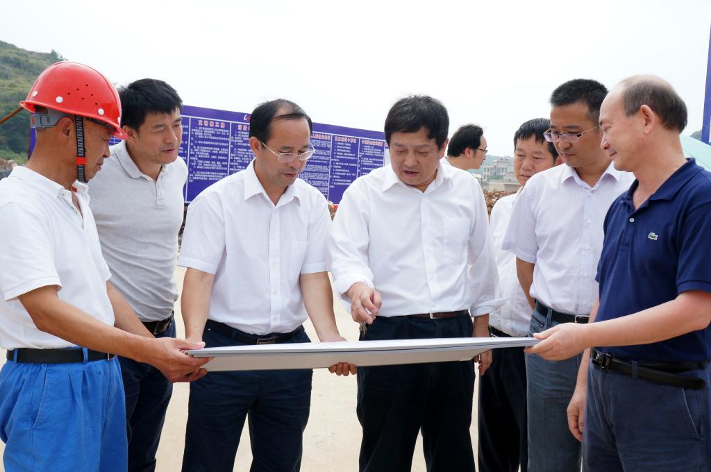 贵州省教育厅党组成员、副厅长、省委教育工委委员代其平(右三)与安顺市人民政府市长助理孟波(右一)、安顺学院党委书记罗荣彬(左三)、院长刘雷(左一)、副院长郭本华(右二)等实地查看安顺学院校园改扩建工程建设进展情况