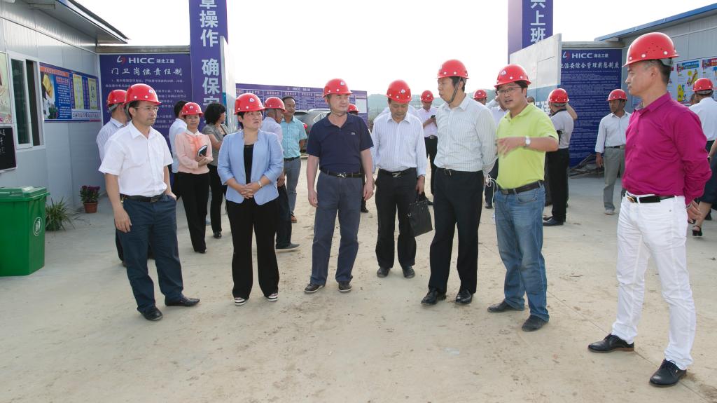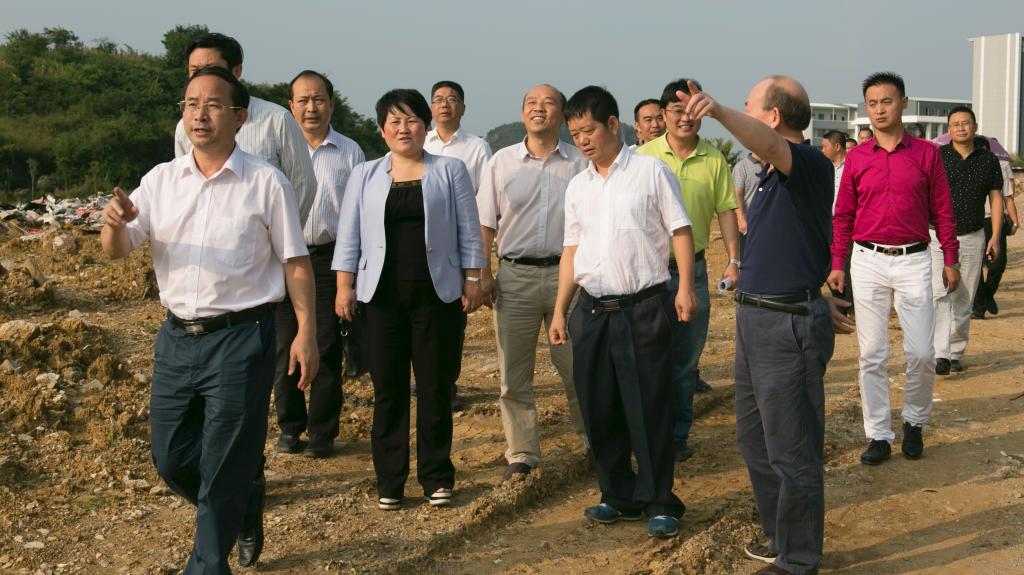 开发区党工委书记代敏与学校党委书记罗荣彬、院长刘雷等查看施工工地。