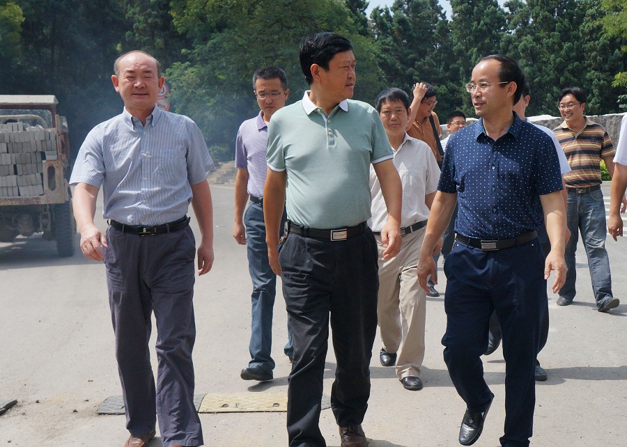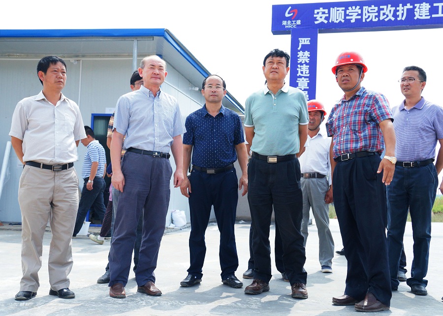 安顺市人民政府副市长廖晓龙(中)与安顺学院党委书记罗荣彬(右)、院长刘雷(左)等实地走访查看安顺学院一期改扩建工程建设进展情况
