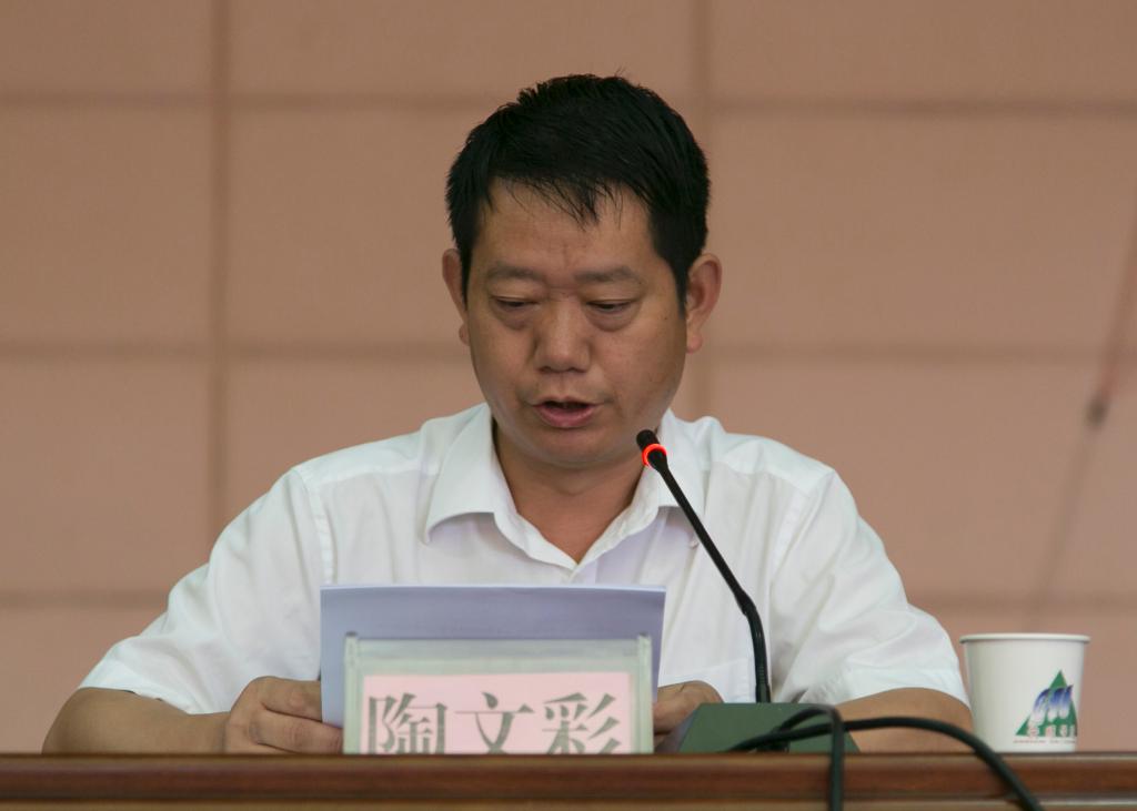 安顺学院党委副书记陶文彩宣读罗荣彬书记的书面讲话稿