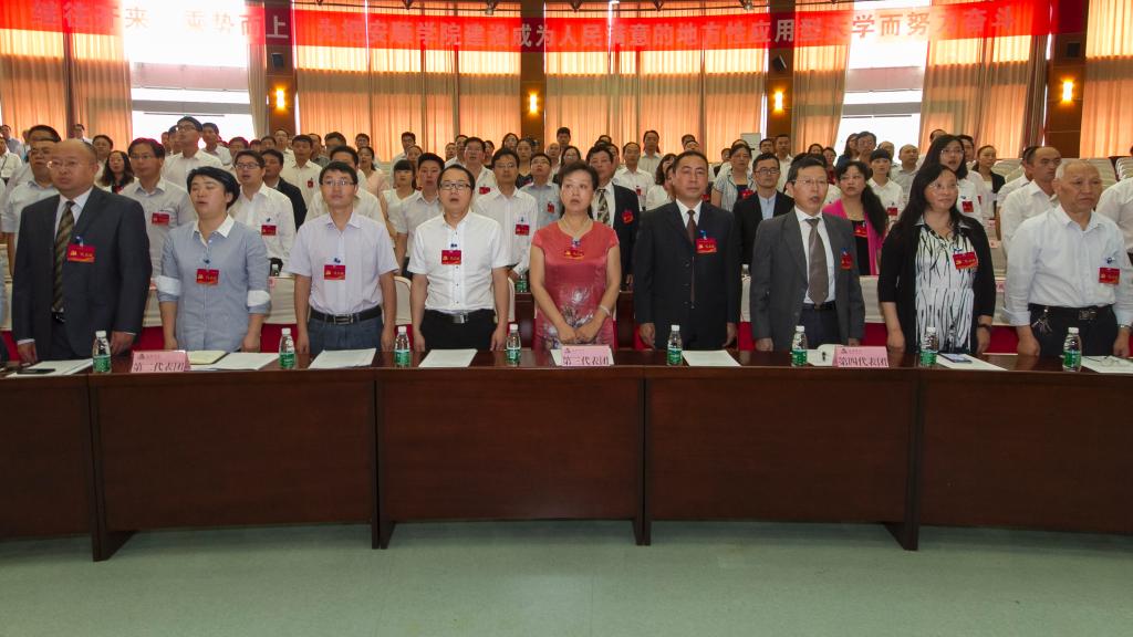 大会出席代表肃穆起立高唱《中华人民共和国国歌》