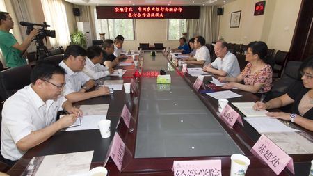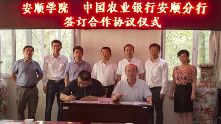6月17日下午,中国农业银行安顺分行党委书记、行长凌朝阳,副行长李永学、穆文全一行到我校签署合作协议。学校党委书记罗荣彬,院长刘雷,党委副书记陶文彩,副院长熊国敏、王芳恒及党政办、计财处、基建处、经管学院等部门领导参加签署合作协议仪式。仪式由副院长熊国敏主持。