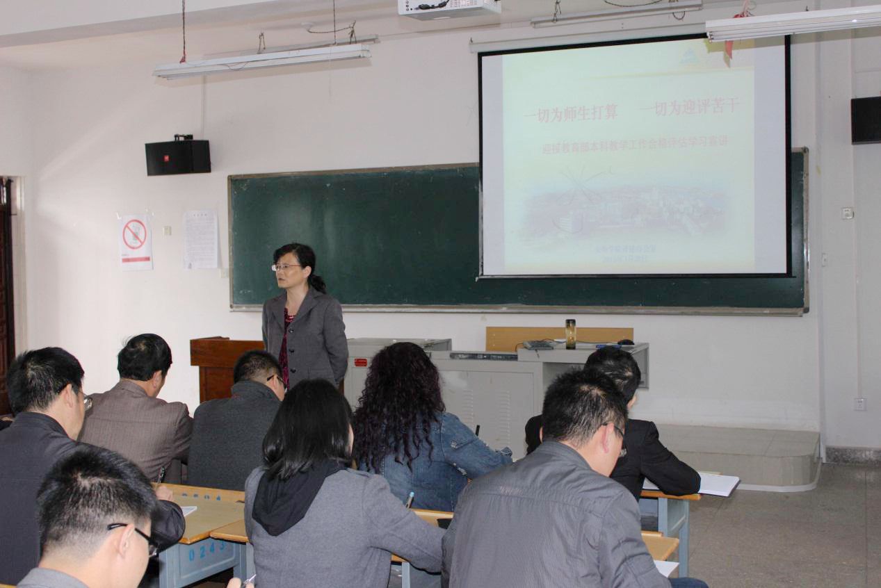 为扎实做好本科教学工作合格评估的宣传工作,4月27日下午,安顺学院副院长熊国敏教授在B41教室为化学化工学院、数理学院全体教师作合格评估知识宣讲。