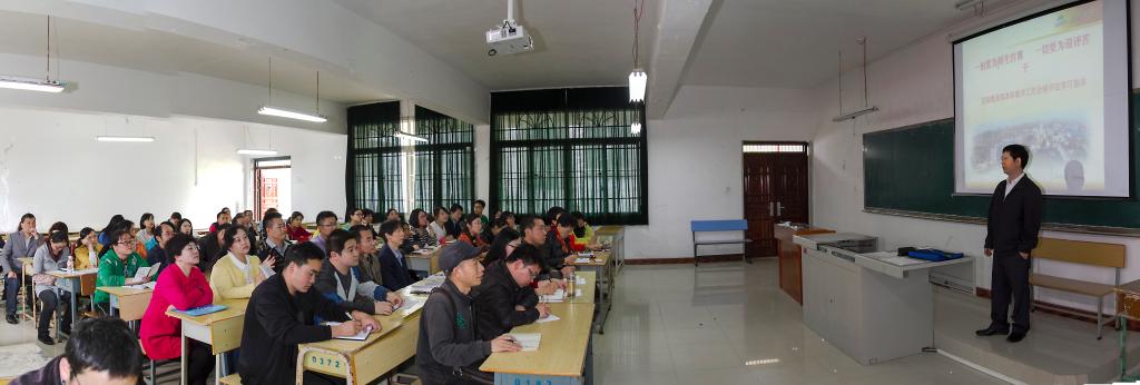 2015年4月27日下午,安顺学院党委副书记陶文彩在B13教室为人文学院、教育科学学院作迎接教育部本科教学工作合格评估宣讲。人文学院、教育科学学院全体党政领导班子成员和教师约60人参加宣讲会。宣讲会由人文学院院长雷鸣主持。