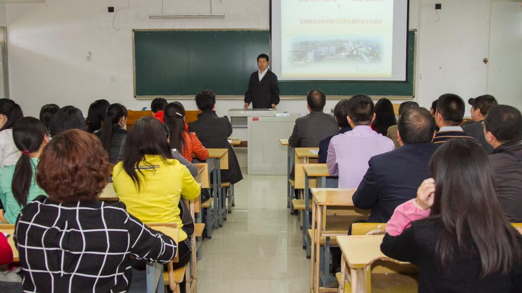 宣讲会上,陶文彩副书记紧密结合学校当前实际,从合格评估基础知识、合格评估方案、合格评估核心内涵、合格评估指标解读、合格评估工作任务、合格评估程序、合格评估各阶段的工作要点和迎接评估注意事项等方面做了详细的解读。