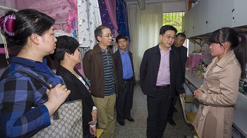 督查组一行走访查看校园环境,深入学生宿舍、学生食堂,查看管理制度、卫生条件、定价标准,并与学生亲切交谈,询问学生学习、生活等基本情况,对学校的开学准备、校园安全、后勤保障等情况进行全面督查。安顺学院党委副书记陶文彩,副院长王芳恒、令狐荣涛,党政办公室、教务处、学生处、人事处、后勤处、教师工作处、保卫处等相关部门负责人陪同巡视,并向督查组汇报学校2015年春季开学情况。