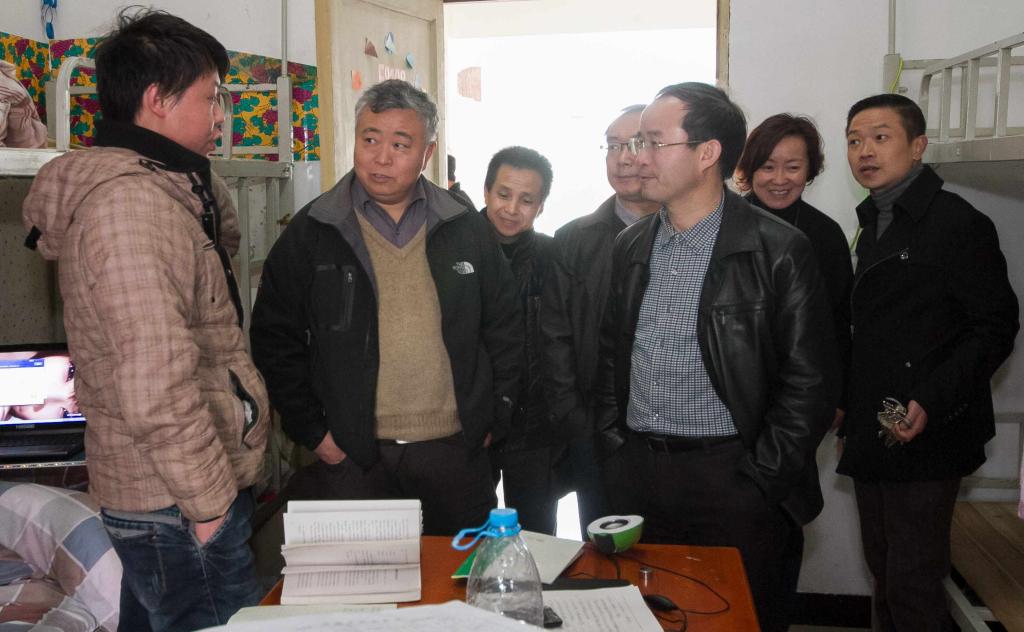 罗荣彬书记一行从7号学生宿舍开始依次检查各楼点基础设施的配备情况,实地查看了供水管道、供电线路的畅通情况,对学生宿舍楼的准备工作给予了充分肯定,同时对寝室用水、用电、防盗等安全隐患提出防护改进的相关意见,并深入宿舍与学生亲切交谈,询问学生用水、用电、学习、生活等基本需求,送上了新年的祝福。随后,罗书记一行到学生食堂、商店、澡堂等地点检查其他各项工作的准备情况。