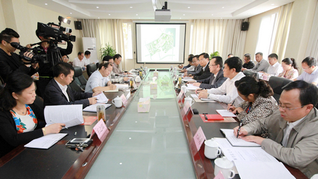 在调研和专题办公会上,罗荣彬书记、李建军校长从安顺学院的硬件建设、软件建设、急需解决的问题等方面作了汇报。