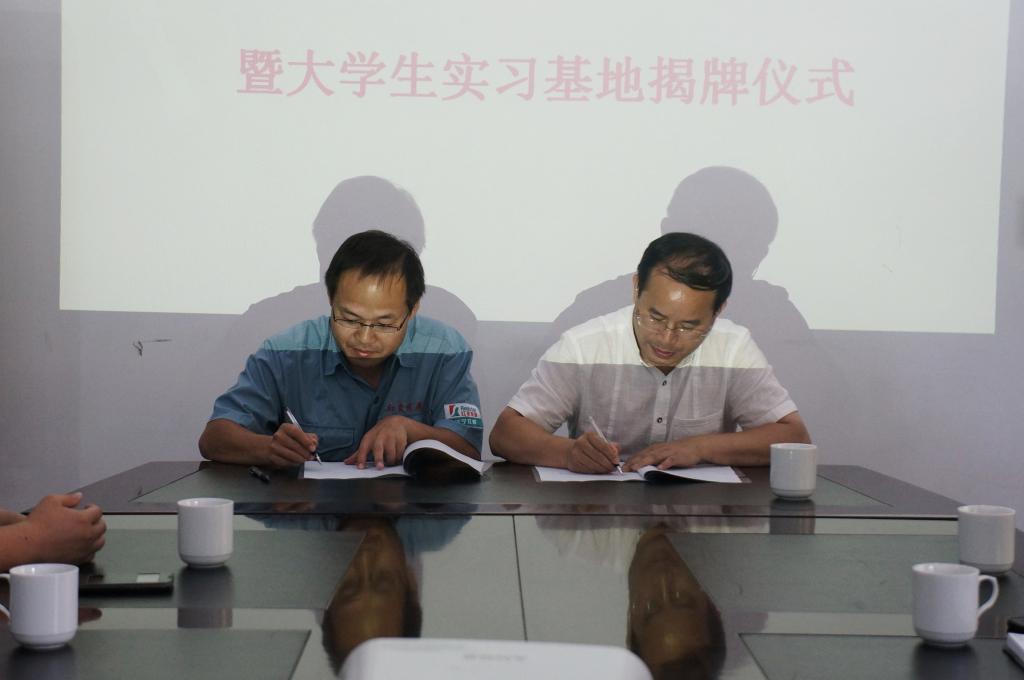 罗荣彬书记与刘湘玉总经理签订了合作协议。签订协议后,罗荣彬书记与公司党委书记朱积极为实习基地揭牌。