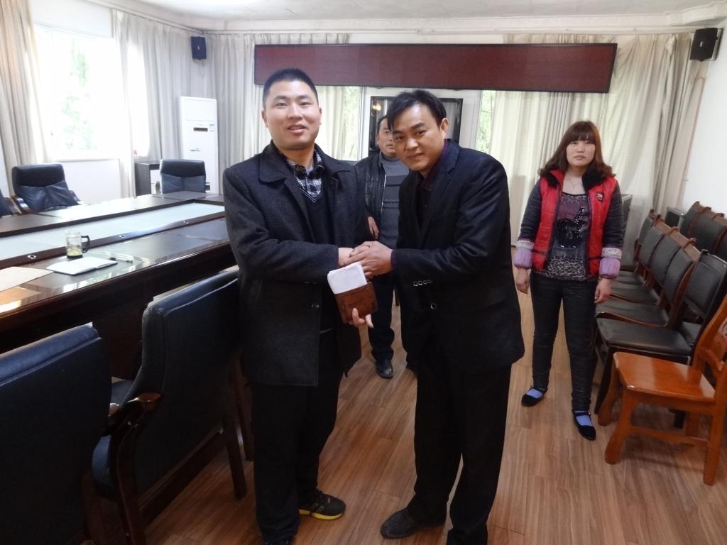2014年2月27日,家住安顺市西秀区宁古镇山井村的钟连华先生,骑摩托车经过经济开发区学院路时,不小心将钱包遗失。钱包里面有现金若干,多张银行卡、身份证和家里小孩的转学证明等重要资料。钟先生遗失钱包之后万分焦急,发动亲戚朋友到处寻找。就在这时,他接到了安顺学院党政办公室请他领取钱包的电话。原来是党政办秘书科的罗伟明老师在上班的路上捡到了钟先生的钱包。这真是“踏破铁鞋无觅处,得来全不费功夫”。钟先生接到电话后,马上带着妻子和父亲来到安顺学院党政办公室领取了钱包。钱包失而复得,钟先生一家人十分高兴和感激,当时就拿出1000元钱来酬谢罗老师,但罗老师婉言谢绝了。罗老师说到:“这只是举手之劳,是我们应该做的,作为老师更应该起到模范带头作用。”钟先生激动的说:“总有人抱怨这个社会缺乏诚信,但安顺学院的老师却用行动弘扬了社会的正气,感谢安顺学院培养了这么好的老师!
