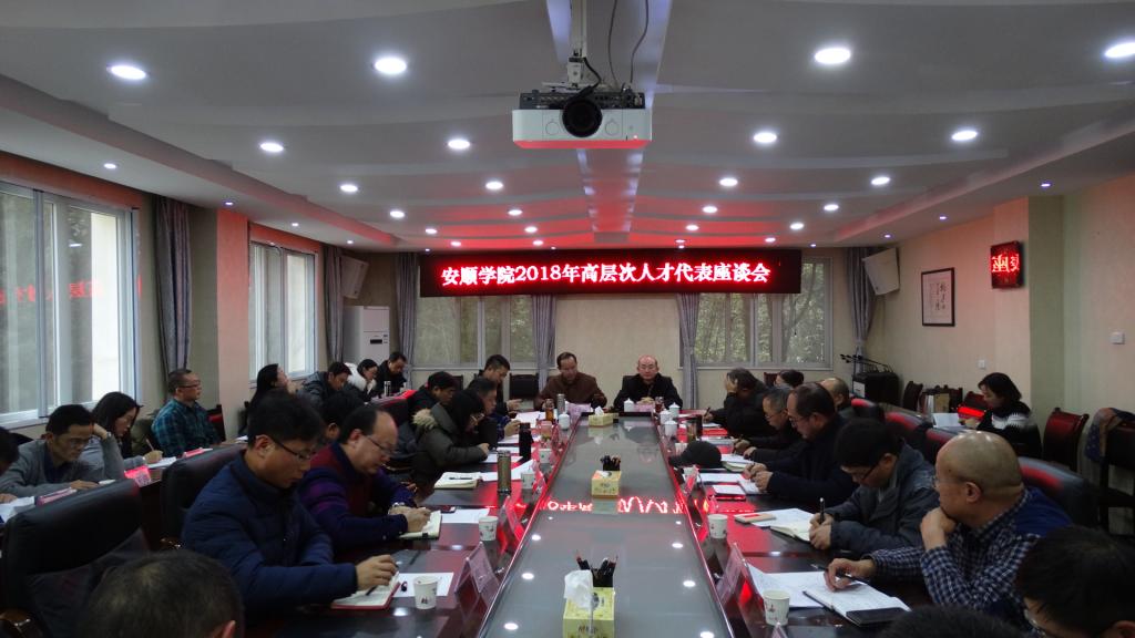 1月10日下午,安顺学院召开2018年高层次人才代表座谈会,听取高层次人才对学校改革发展和改进人才工作的意见建议。同时,这次会议也是为召开安顺学院2017年度党员领导干部民主生活会进行座谈征求意见。学校党委书记罗荣彬,院长刘雷,党委副书记陶文彩,副院长熊国敏、王芳恒、令狐荣涛,纪委书记马力,副院长郭本华出席会议。各二级学院部分院长、教授、博士,科研处等相关职能部门的负责同志参加了会议。会议由陶文彩副书记主持。