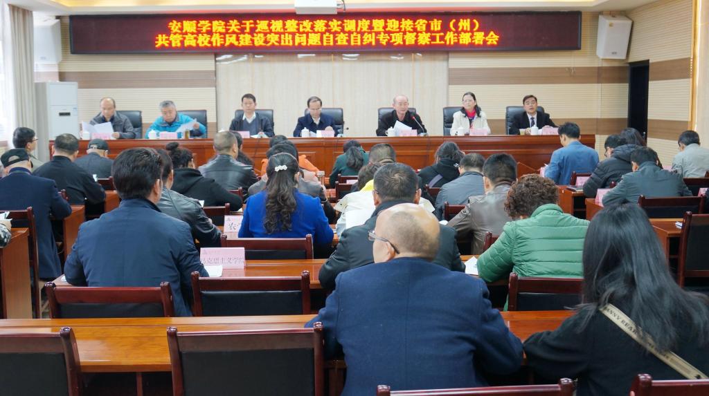 会上,陶文彩副书记宣读《安顺学院关于迎接省市(州)共管高校巡视整改、作风建设突出问题自查自纠专项督察的工作方案》。罗荣彬书记、刘雷院长先后讲话,对相关工作提出要求。
