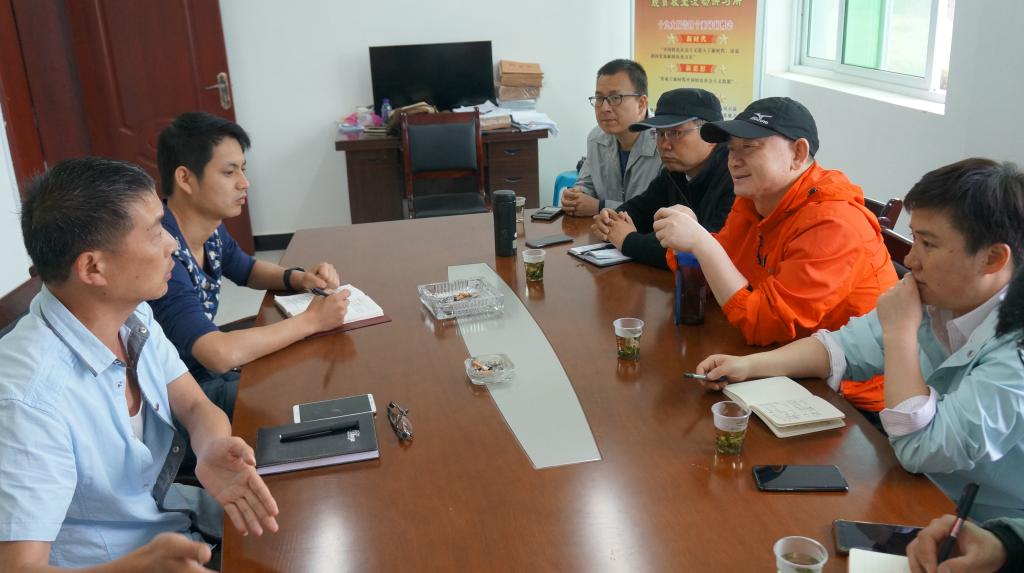在村委办公室,刘雷院长一行听取了五指山村驻村工作组关于土地流转、产业项目推进、产业结构调整、扶贫工作等方面的情况汇报。随后,刘雷院长一行到五指山村辣椒育苗大棚、五指山村鱼塘等处实地调研。
