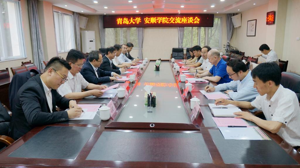 2018年5月27日,青岛大学校长夏东伟、副校长于永明、校长办公室主任姜卫东、教务处处长孔伟金、发展规划处处长徐龙飞、数据科学与软件工程学院院长高鹏翔、校长办公室行政科科长司现鹏一行7人到安顺学院座谈交流。安顺学院党委书记罗荣彬、院长刘雷,党政办、教务处、发展规划处、电子与信息工程学院等部门负责人参加座谈会。座谈会由罗荣彬书记主持。