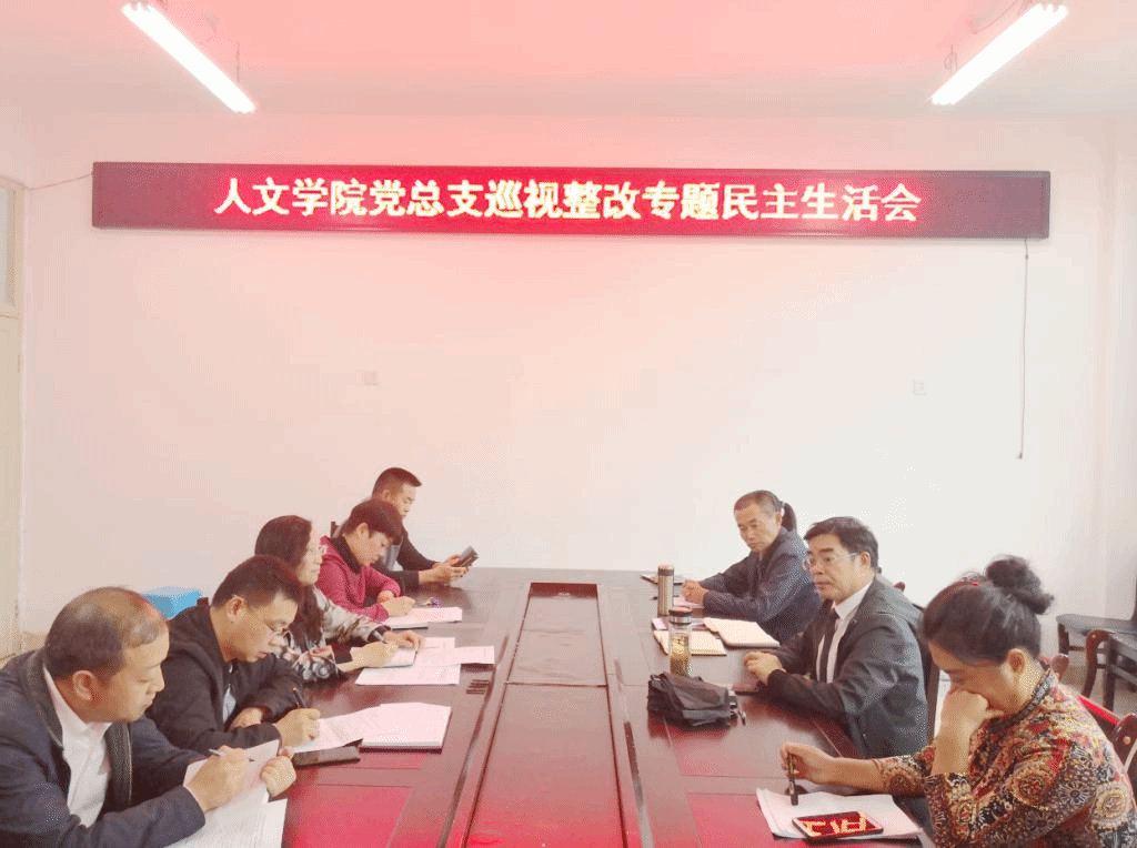 9月17日下午,安顺学院人文学院党总支在学院会议室组织召开巡视整改专题民主生活会。安顺学院副院长王芳恒,人文学院领导班子以及党总支全体支部委员参加。会议由人文学院党总支书记蒋晓兰主持。