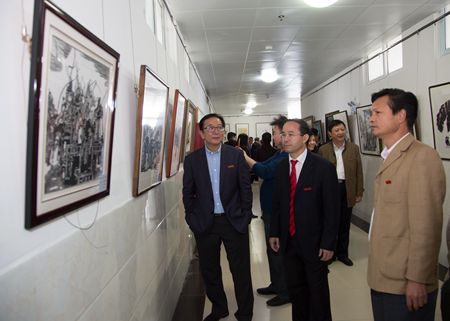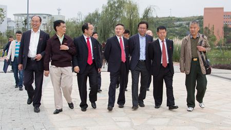 研讨会结束后,全体领导、嘉宾和校友到礼堂前合影留念,并到特教大楼参观“迎接新时代踏上新征程”书画作品展,考察小区改扩建项目,感受母校的新变化。