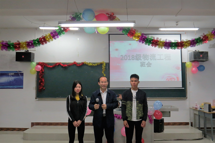 在班会中,物流班同学表演了精心准备的节目,展现了大学生朝气蓬勃的青春风采。
