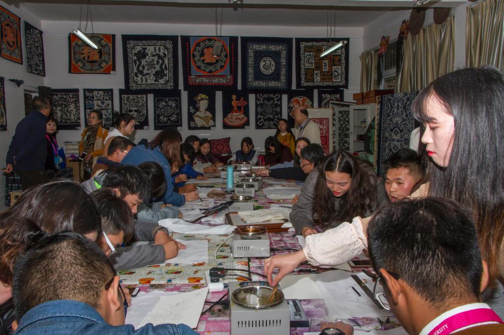 台湾大仁科技大学师生体验制作安顺学院少数民族蜡染作品